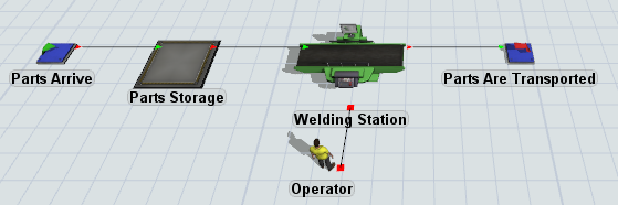 Imagine you are building a simulation of an assembly line for car steering wheels and you are interested in determining whether your assembly line is running at its optimal efficiency level. In this simulation, a series of parts will arrive at a welding station. You might represent the welding station using a processor (a type of 3D object that simulates the time it takes to process a particular product) and an operator (the employee who needs to operate the welding machine).
