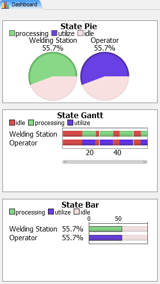 You can use then use these states to gather useful metrics about the efficiency of the assembly line. Perhaps you've decided that the key metrics you are interested is the amount of idle time compared to the amount of utilized time for both the operator and the processor. These metrics can help you determine whether your welding station and your employees were being under- or over-utilized:
