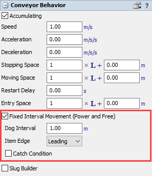 - Check the Fixed Interval Movement (Power and Free) checkbox to enable power and free behavior.
