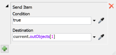 - Destinations - This property decides "If the condition is met, which destination should I send the item to?" and sorts items to multiple possible destinations based on criteria you define. This property usually points to another conveyor logic object or transfer that is connected to its output port(s).