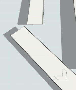 - After you release the mouse button, a transfer will appear that connects the two conveyors together. The transfer will look like a small square box that overlaps the edges of the two conveyors: