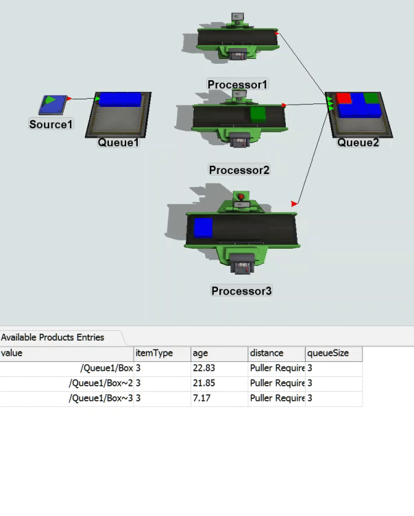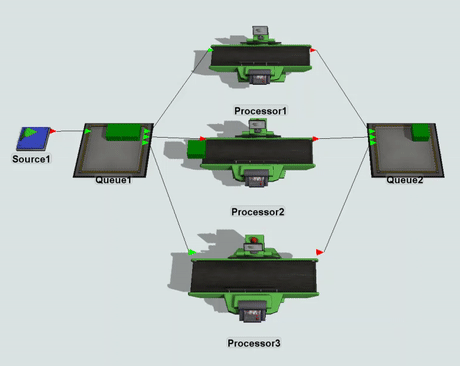 Objects can use conditional logic to determine which items should flow to certain downstream objects. For example, objects could be sent to a downstream object based on certain priorities, such as how long they've been waiting in a queue or by their item type. Objects with a specific value on a custom label could be sent to a specific downstream object (such as based on their weight, their size, or some other value on a label). The way that flow items get routed could also possibly depend on other external conditions in the simulation model such as the time of day or specific circumstances. Nearly any kind of condition can be simulated, so the possibilities are limitless.