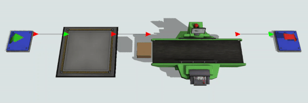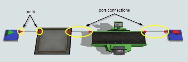 You can create port connections directly between 3D objects in the simulation model. You can then use the properties on the 3D objects to control the flow between two objects using their ports.