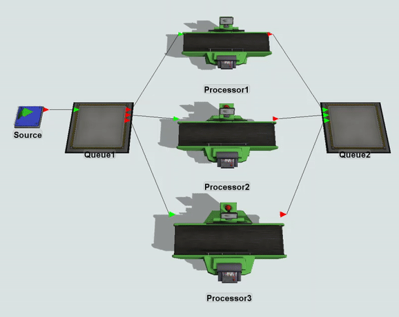 FlexSim has the ability to build nearly every type of flow connection or any kind of flow logic. The following sections explain some of the more common types of flow connections used in simulation modeling.