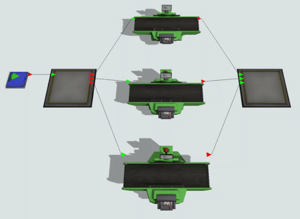 Port connections work well when you're just sending an item from one object to a single downstream object (such as a one-to-one connection type). Port connections between two objects can be created quickly and easily and come pre-programmed with basic flow logic.