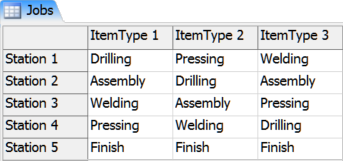 For example, imagine you wanted to simulate a job shop in which items will be sent to one of four different stations (drilling, assembly, welding, pressing). Depending on the type of item it is, it will need to be sent to each station in a different order: