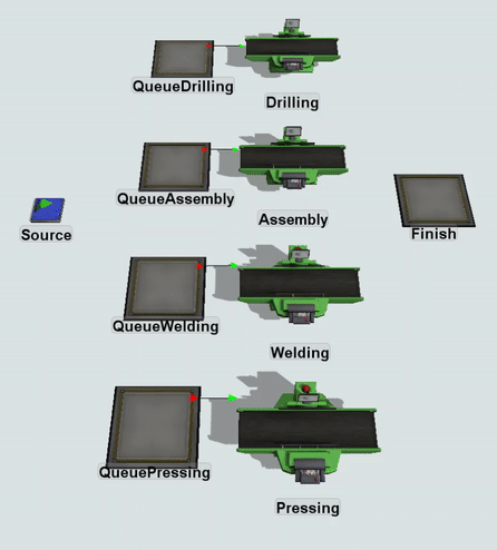 - Flow items - The items or materials that will flow through your simulation model. Flow items can represent materials, products, customers, orders, information, etc.