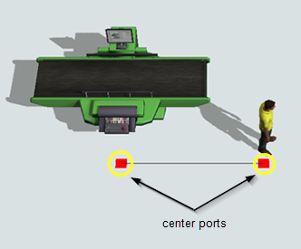 Center ports are usually used to connect task executers to fixed resources, but they can connect any two objects that need to reference each other. When the center ports of two objects are connected, it creates an abstract reference point between those two objects. Center ports enable objects to communicate or interact in complex ways: