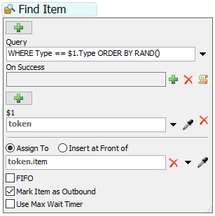 Another approach to the above example is to use the Find Item activity to get an item as well as mark that item as outbound.