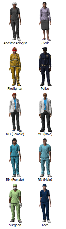Staff objects are people that will move around the 3D model assisting patients and perform various tasks throughout the simulation model. They can interact with patients, locations, transports, and equipment as needed. For example, staff can travel, escort or transport patients, move equipment, and perform many other simulation tasks.