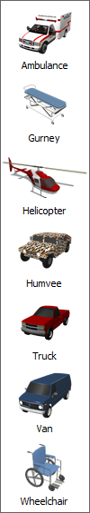 Transport objects can move around the simulation model carrying patients from one location to another. They will typically require a staff member to operate them.