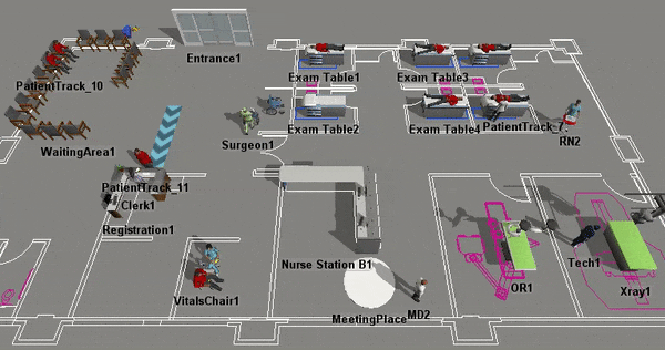 Simulation should be just as capable of being visually compelling as it is analytically compelling. FlexSim Healthcare's fully 3D visuals allow you to see exactly what's going on in the model as it is running. It's much easier to compare results when you can visualize what's happening to your simulated healthcare system.