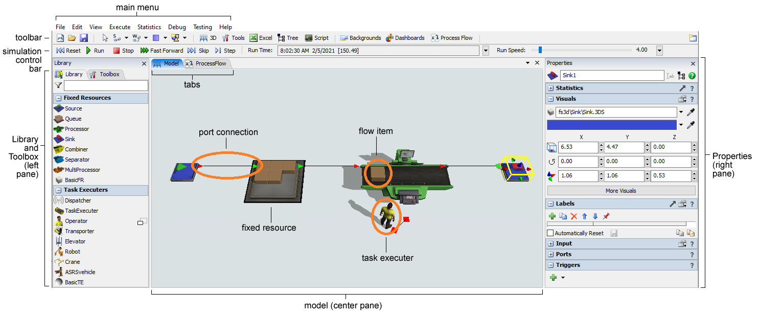 This topic will provide a high-level overview of the most important elements of the FlexSim user interface and will explain some of its key terms and concepts.
