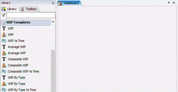 - Make sure the dashboard is the active window so that the Library displays the dashboard charts and widgets.