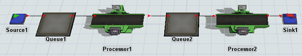 For example, imagine you have modeled a workstation in which flow items move from a queue to a processer, then to a second queue and a second processor: