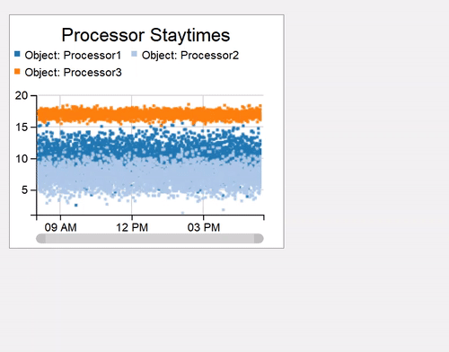 For each kind of statistic, FlexSim provides several visualization options. For example, you can view an object's content as a Table Chart, a Bar Chart, and as a Time Plot.