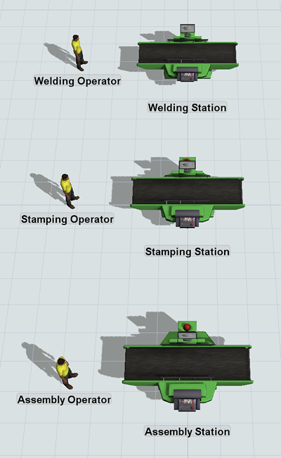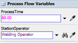 After attaching each processor to the object process flow, you could then set the default values for these variables in the processor's Quick Properties. For example, you could set the Welding Station to use a process time of 60 and to use the Welding Operator whenever a task executer is needed: