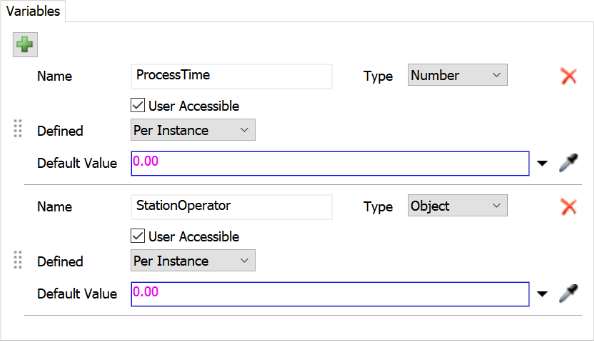 Lastly, you'll set up any relevant process flow activities to refer to the process time variable and any task sequences will be assigned to the operator variable. When the simulation model runs, each attached processor will run as a separate instance of the process flow. Each processor will reference the value of the process flow variables in its Quick Properties.