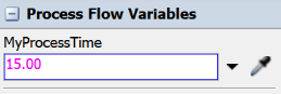 When you're finished, your new variable will show up in the Process Flow Variables group in the general properties for the process flow in Quick Properties. It will generally be near the bottom of the Quick Properties pane (after the Labels group). For example, if you had just created a process flow variable called MyProcessTime with a default value of 15, it would look similar to the following image: