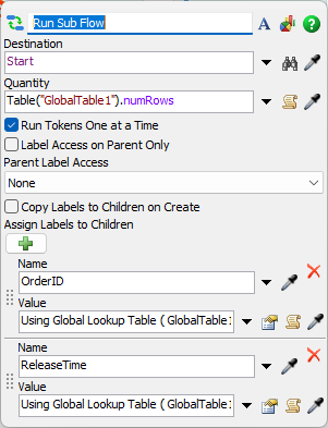Table("GlobalTable1").numRows - Check the Run Tokens One at a Time box.