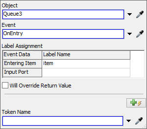 Notice that the Entering Item of the event is assigned to a label on the new token called