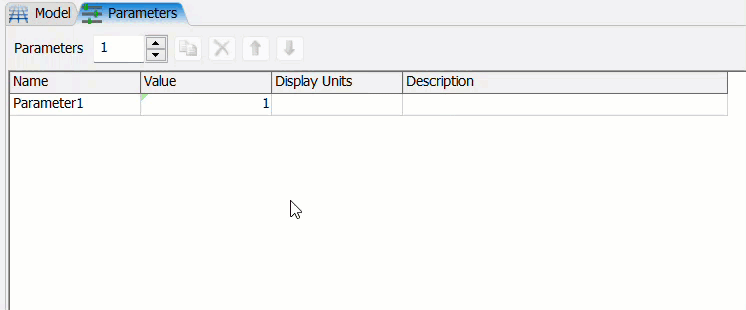 The Name column allows you to define the name of the parameter. All parameters in a model must have a unique name, even if there are multiple parameter tables. In addition, we recommend that you not begin a name with a number, or use spaces in the name.