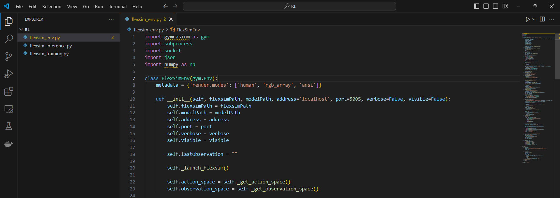 - In the Explorer pane, double-click flexsim_env.py to open it.