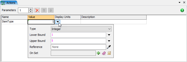 14. Click on the dropdown button to open a popup to modify the properties of that Parameter.