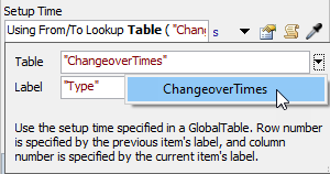 8. Select ChangeoverTimes for the Table and leave the Label as "Type".