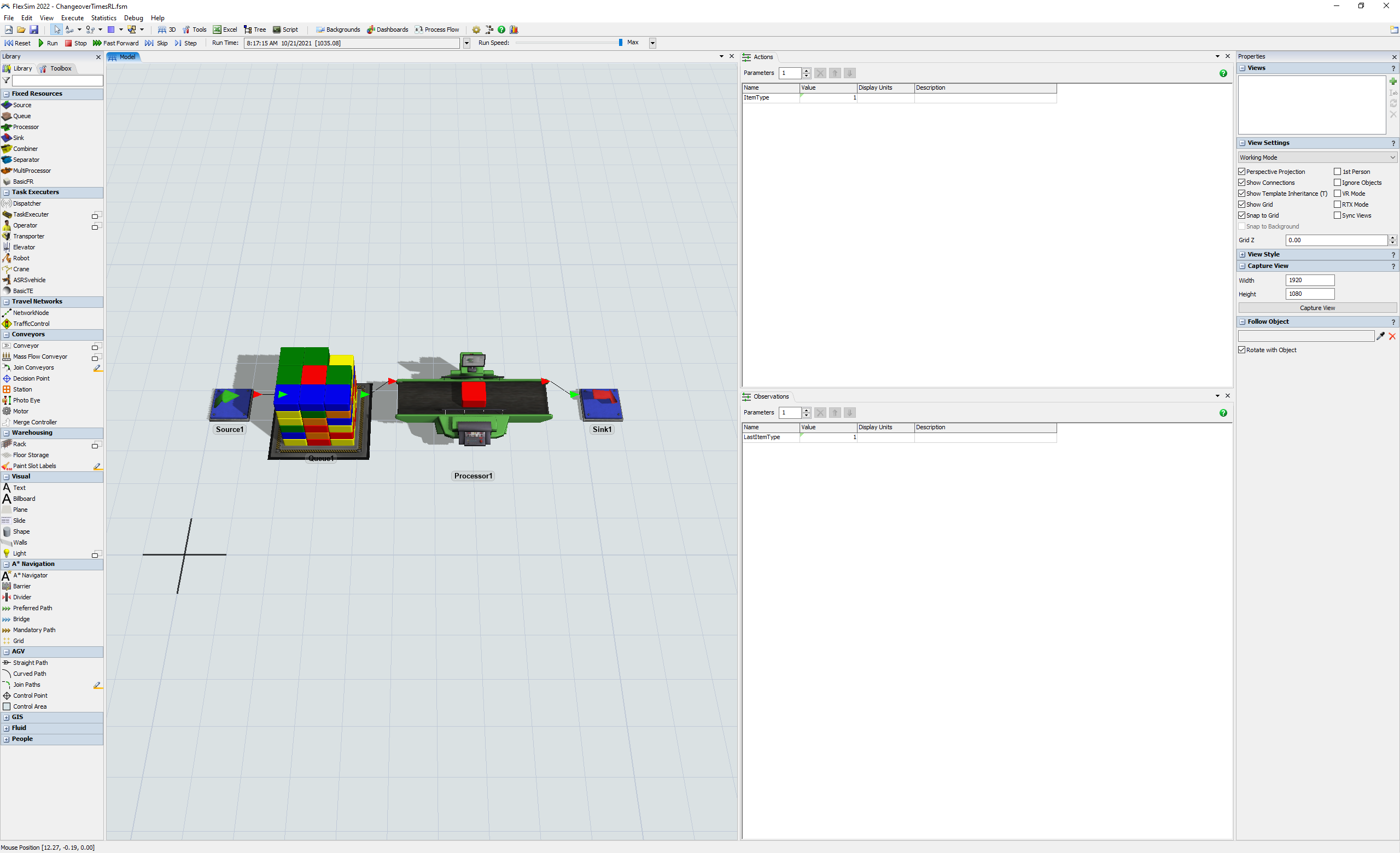 22. Reset and Run the model. Verify that the processor pulls red items (Type 1) if they are available.