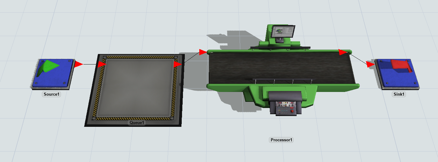 1. Drag a Source, Queue, Processor, and Sink into a new model.