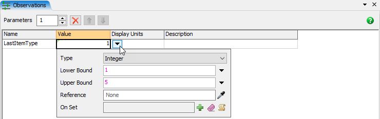 7. In the Observations table view, rename Parameter2 to LastItemType.