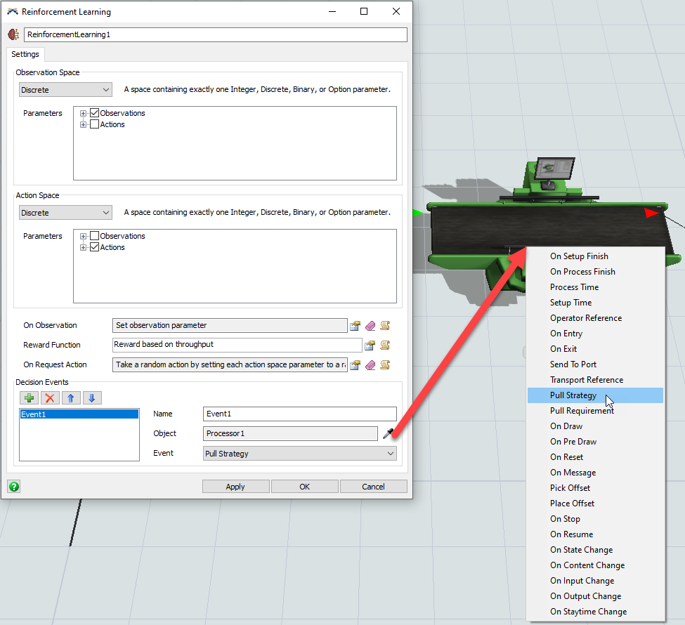 30. In the Decision Events group, add a new event reference and sample the processor's Pull Strategy event.