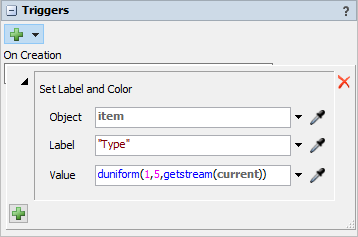 10. Add an On Creation trigger and select Data > Set Label and Color.