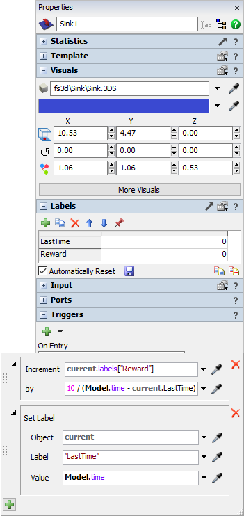 12. Before we fill out the Reward Function, we want to configure the sink to accumulate a reward amount on a label as items leave the model.