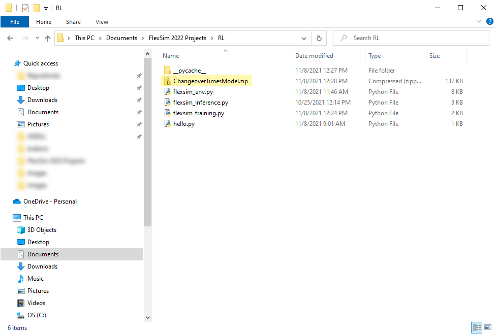 11. If you open Windows Explorer to your python project directory, you will find a zip file containing the data for the trained AI model. To learn more about using that data, continue to Using a Trained Model.