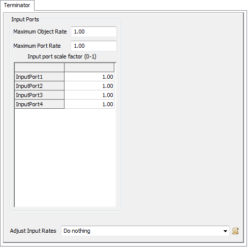 The user has complete control of the input rates of the Terminator. This includes a function called "AdjustInputRates" that fires every tick. This function is used to change the input rates and scale factors during a model run. The modeller is not given control over the output rate because the material the Terminator receives is destroyed and cannot be sent downstream.
