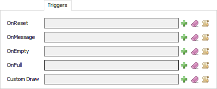 Each object may have a different set of triggers. See the Concepts page for that category of object for more information about each trigger under the Events section.