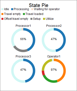 This chart template creates a pie chart, and calculates utilization based on each object's time in various states. Each segment of the pie chart represents the proportion of time spent in one of the object's states.
