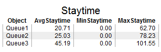 This template creates a chart with up to four columns. The first column shows the object. The other three columns show the average, minimum, and maximum staytime for the object.
