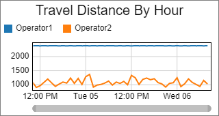 This template creates a time plot, with one colored line per object. The line shows the distance traveled for that object from the previous hour, every hour. For more information about Travel templates, see Travel Templates.