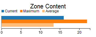 This template creates a bar chart. Each bar color shows the current, minimum, maximum, and average content for the specified Zone. If you choose a local Zone from an instanced Process Flow, there will be one set of bars per instance.