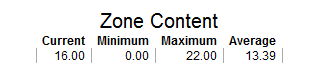 This template creates a table chart. The table shows the current, minimum, maximum, and average content for the specified Zone. If you choose a local Zone from an instanced Process Flow, an additional column will display the instance, there will be one row per attached instance.