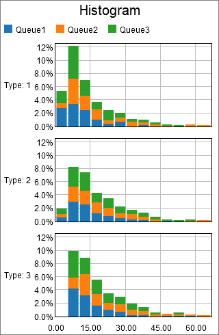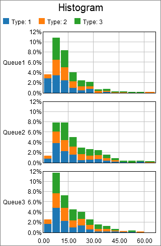 Given the table shown above, you could use the Type column to determine the axis, and the Queue column to determine the color. The resulting chart might look like the following: