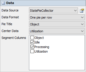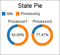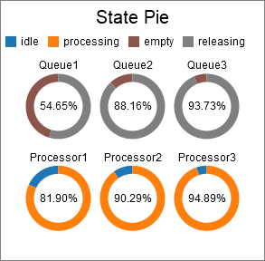 The Pie chart can be used to visualize and compare similar values from many objects. The example below shows the time in state for several objects.