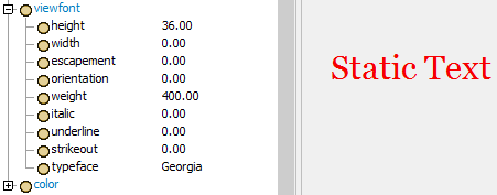 This attribute only applies to Windows Common Controls. It defines the font that the control will use. The viewfont attribute is a wrapper around the Windows API CreateFont() command. Add this attribute and give it sub-nodes defining the different parameters that will be passed into CreateFont(), as shown in the figure below. You can refer to Microsoft's Windows API documentation for more information on this.