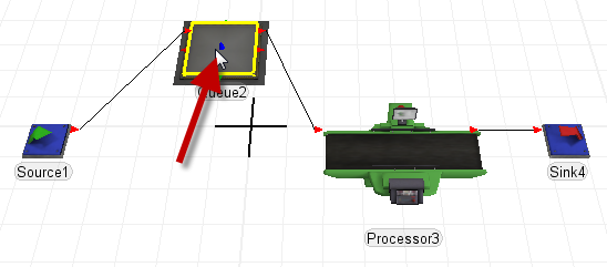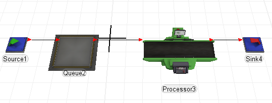 First build a simple example model containing a Source, Queue, Processor and Sink.