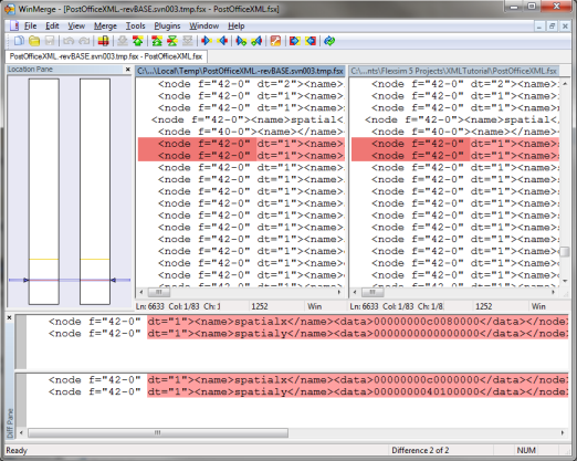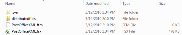 Now edit PostOfficeXML.ffm in a text editor. The first thing we'll do is put the node model/Tools/Workspace into a different file. This is something you'll probably want to do always if you're using version management. The node model/Tools/Workspace stores all of the windows open in the model, so if you're editing a model and change or reposition the windows that are open, that will change the model file. For version management this is often just static that doesn't need to be tracked, so we'll have the node saved off to a different file, and then we can just never (or at least rarely) check that file into the version management system. Specify the following code: