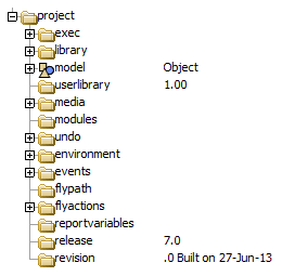 The main tree holds many of the higher level functions in FlexSim. It also includes the following crucial sub trees: exec, library, model, undo, media.