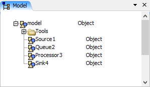 FlexSim is completely designed around the concept of a tree structure. All information in FlexSim is contained within the FlexSim tree, including the library objects, commands, and all model information. This tree hierarchy is made of individual nodes that link together and hold information.